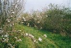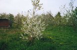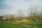Das etwa 4000m2 große Grundstück (schwerer Lehmboden) wurde 1994 gekauft. Die erste Anschaffung war ein Windrad mit einer Wasserpumpe (Bohrtiefe 13m). Dieses bepflanzte ich mit ca. 100 Obstbäumen und diversen Beerensträuchern: